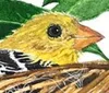 Lesser Goldfinches are more prevalent than American Goldfinches in Santa Barbara but once in a while an American Goldfinch will show up. I pretended that I saw a flock of them when I made this painting.